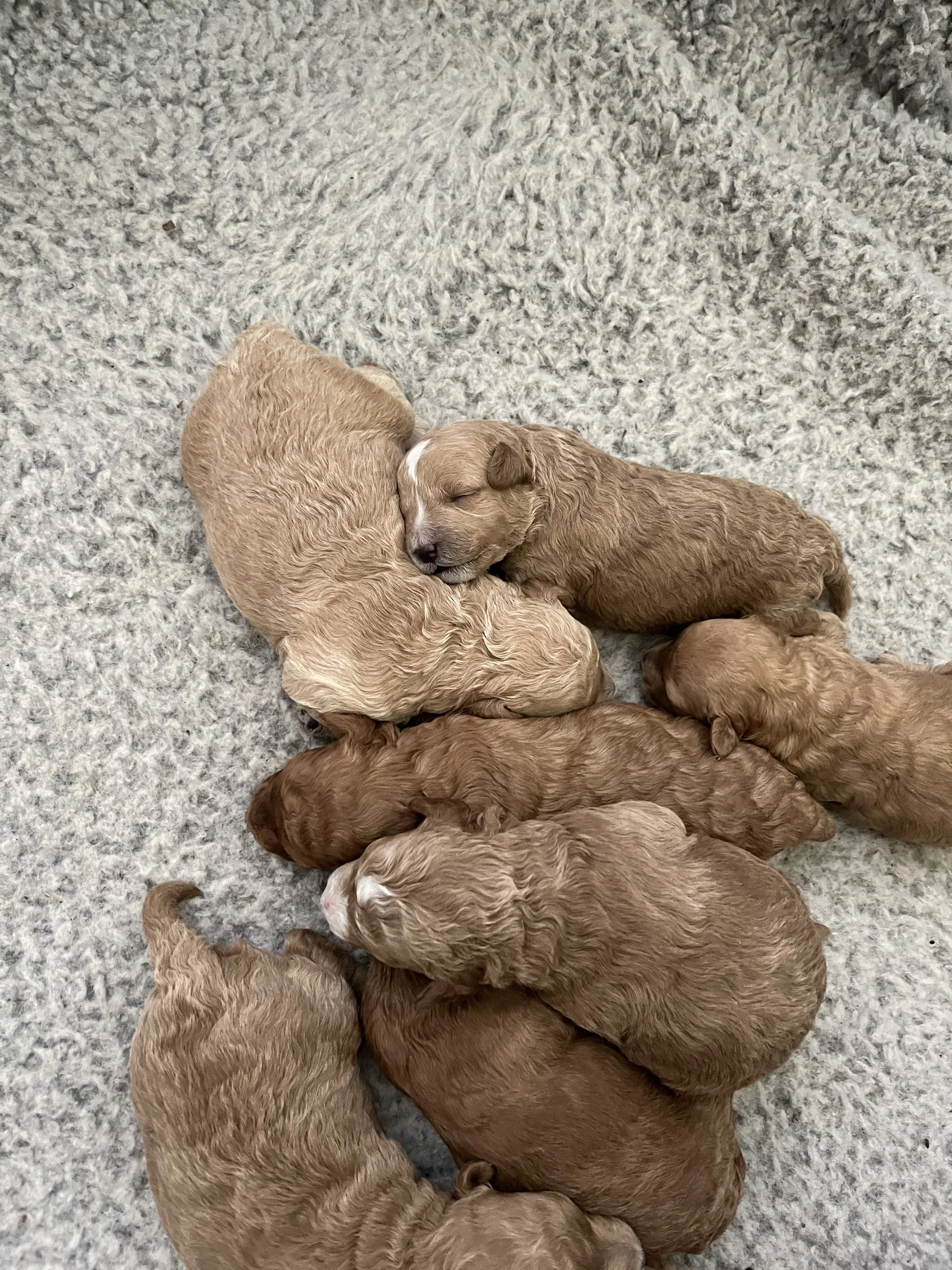 Norah (double doodle) and Teddy (mini poodle) have a litter of 4 puppies 15-25lbs